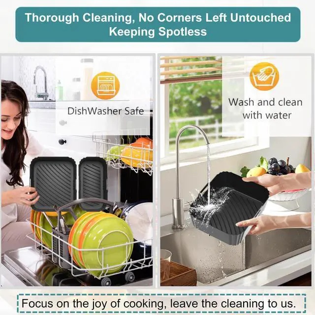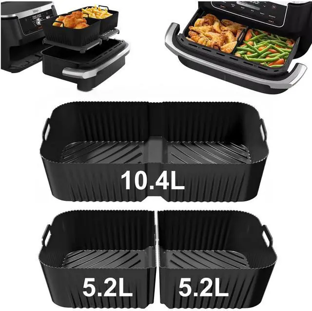 3Pcs Silicone Air Fryer Liners Set 1x 10.4L + 2x 5.2L for Ninja Foodi FlexDrawer AF500UK 10.4L, Reusable Dual Air Fryer Basket Liners for Cosori Twinfry 10L, BPA-Free Heat-Resistant Air Fryer Accessories