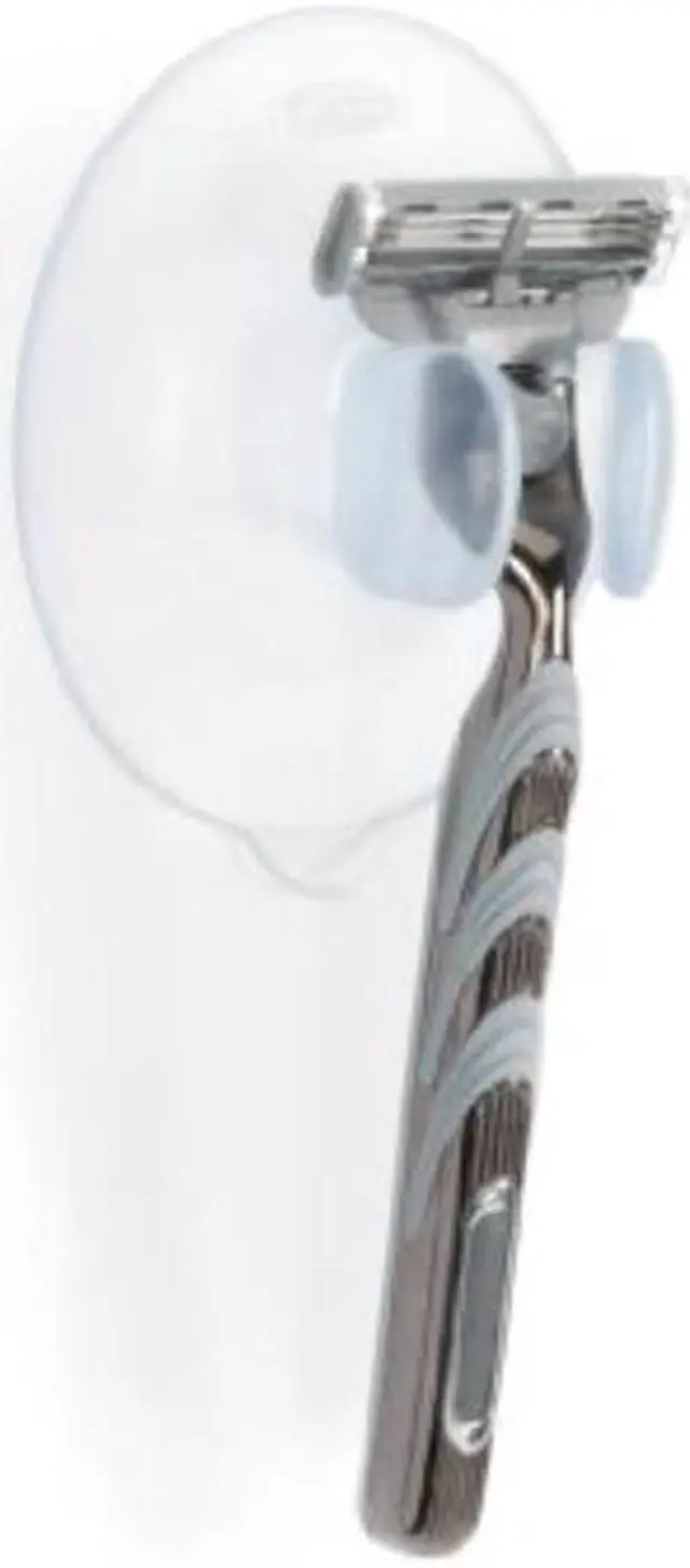 Keep your razors close at hand while keeping it out of the way with the OXO Good Grips Suction Razor Holder. This convenient, compact razor storage solution features a hook that flexes to fit a wide range of razor handle sizes. The surface is smooth and easy to clean and the PVC-free suction cup provides a secure hold on smooth, non-porous surfaces.