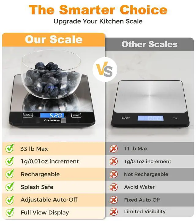 Atogou Food Scale, 33lb Rechargeable Kitchen Scale
