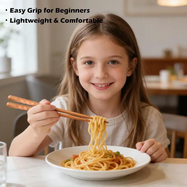 - These lightweight wooden chopsticks are designed with beginners in mind, offering better grip and control compared to traditional round chopsticks.