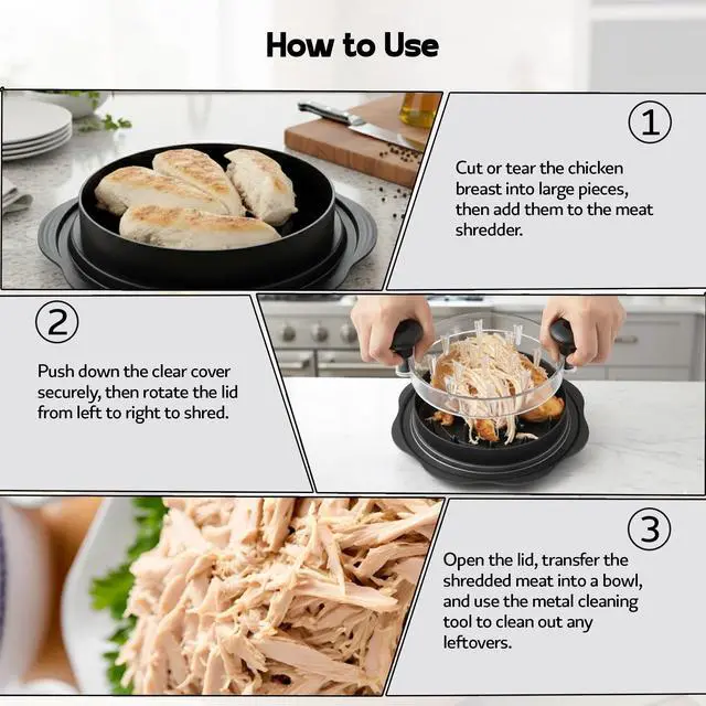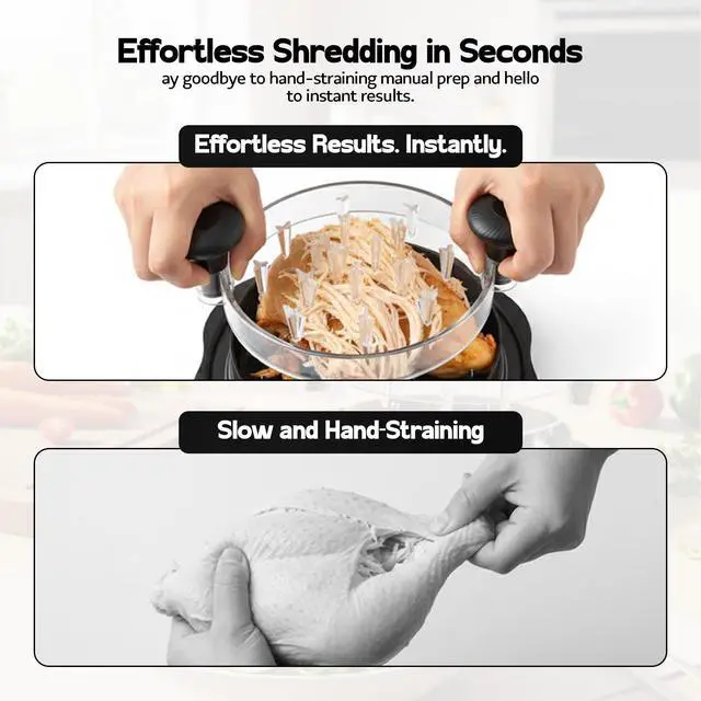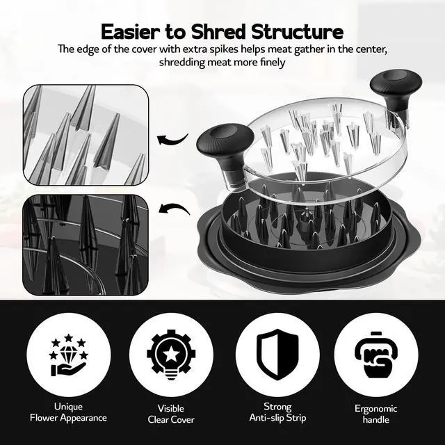 Efficient Meat Shredding The cross-teeth design on both the lid and base ensures full contact with the meat, delivering faster, more consistent shredding with minimal effort.