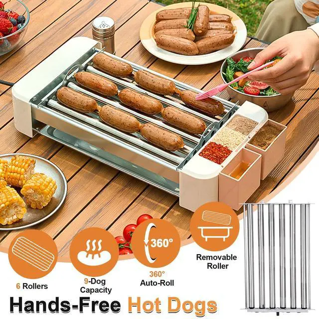 3-in-1 Hot Dog Roller Machine Grill, Griddle & BBQ in One: More than just a hot dog roller, this versatile hot dog machine instantly converts into a flat griddle for pancakes and eggs or a BBQ grate for steaks and vegetables. Its compact, space-saving design makes it ideal for RVs, dorm rooms, apartments, and small kitchensreplacing multiple single-use appliances with one powerful hotdog roller grill