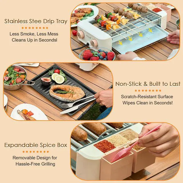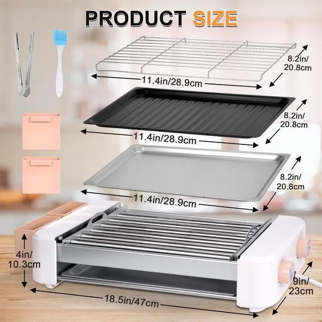 Smoke-Conscious Indoor Grilling Experience: Enjoy authentic grilled flavor with less mess. The built-in removable drip tray captures excess grease, helping reduce smoke and splatter during cooking. This makes the hot dog cooker ideal for indoor kitchens, apartments, and balcony use where clean, comfortable cooking matters