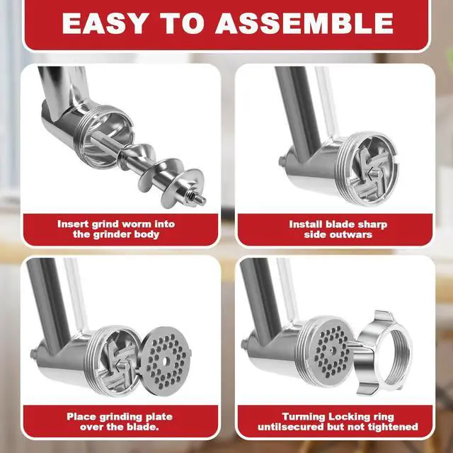 Our meat grinder attachment designed meat grinder attachment for kitchenaid stand mixers, fits for all kitchenaid stand mixers, fitting well for the perfect grinding result.