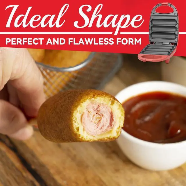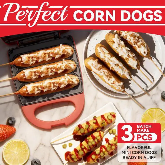 [Instant Cooking, No Frying Required]Effortlessly whip up 3 mouthwatering corn dogs in mere minutes with Bakerwhether you prefer them on sticks or not! Just dip your mini corn dogs into a delectable batter and watch as they cook to golden perfection.