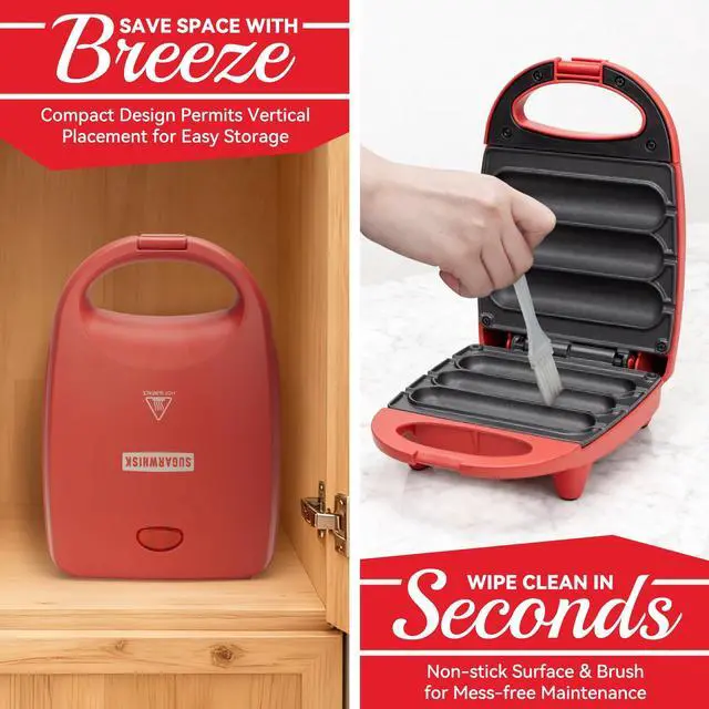 [User-Friendly Design for Easy Cleanup]The nonstick coating on this waffle corn dog maker ensures that your creations slide out effortlessly, maintaining their perfect shape. Plus, cleanup is a breeze, saving you precious time and effort.