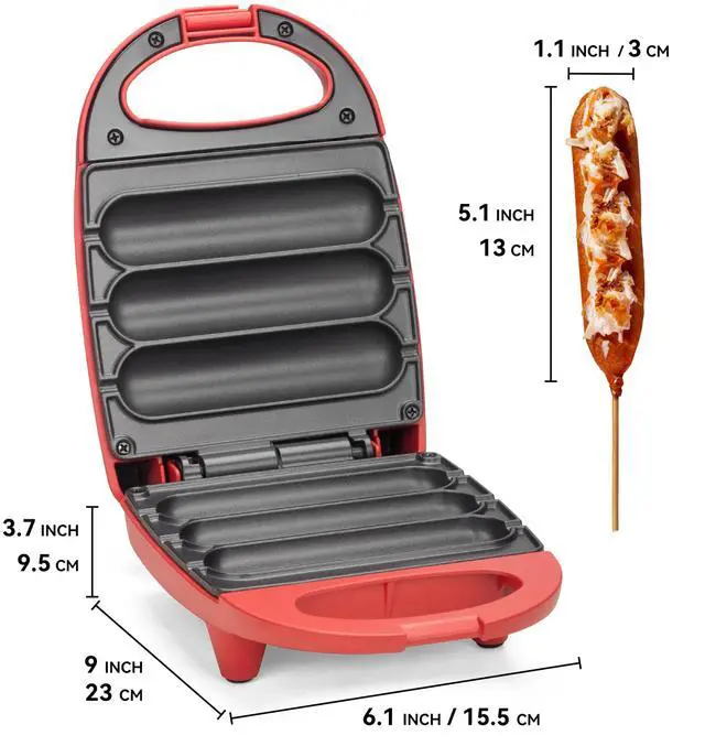 Electric Corn Dog Maker, Fryer for 3 Mini Corn Dogs on Stick, Cheese Mozzarella Sticks & Treats, Corndog Maker Machine, Hot Dog Machine, Brush Included, Red