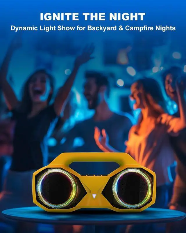 Bluetooth Speaker 80W (Peak) Loud with Bass, 20H Playtime, IPX7 Waterproof, RGB Lights, TWS, Large Portable Wireless Speakers for Outdoor, Home, Party, Pool, Beach, Tailgating, Gym, Work (Yellow)