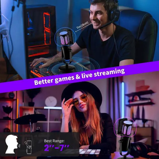RGB and One-touch MuteCyclic RGB lights on the microphone for PC enhances your glowing rig for a carnival atmosphere, immersing you in the intense game arena.Immediately silence the USB microphone with a tap, preventing emotional outbursts to maintain a positive team atmosphere