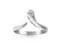Delightfully curvy ends with one white tone cubic zirconia accent showcase the visually appealing style of this open toe ring Designed in rhodium plated sterling silver