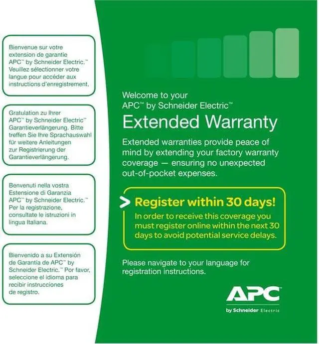 APC Extended Warranty Service Pack - Technical support - phone consulting - 3 years - 24x7 - for P/N: SRT3000XLAUS, SRT5KRMXLTUS, SRT5KXLTUS, SRT6KRMXLIM, SRT6KXLTUS, XP1K9NN42RCC Product Type: Warranty Provided Support: Parts Replacement Service Duration: 3 Year Service Type: Exchange Product Type: Warranty Manufacturer Part Number: WBEXTWAR3YR-SP-05 Provided Support: Parts Replacement Service Duration: 3 Year Service Name: Service Pack - Extended Warranty Manufacturer: Schneider Electric SA Brand Name: APC by Schneider Electric Brand Name: APC by Schneider Electric Service Main Type: Exchange Service Sub Type: Physical