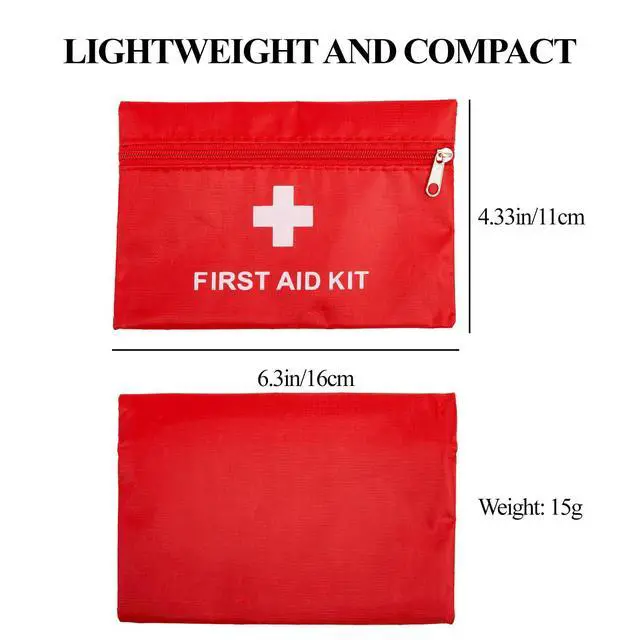 Portable Zipper Pouch:first aid bag empty mesure 4.33*6.3 inch,weighing 15g.Easy to carry and store in your backpack, ideal for outdoor,hiking,camping.