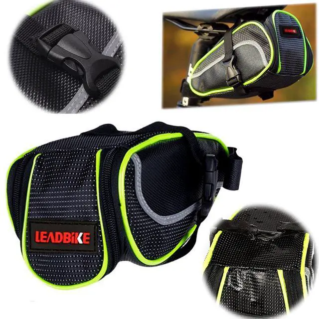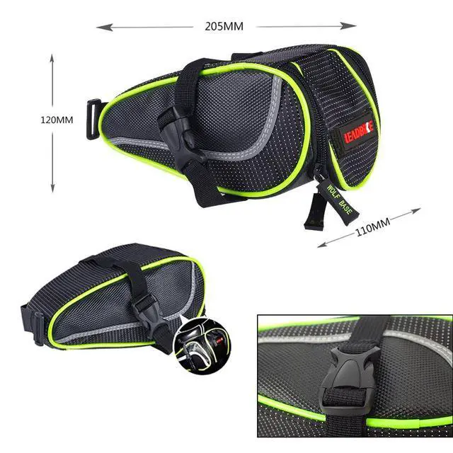 Ryhpez Bike Saddle Bag, Bicycle Bag Back Seat Pouch Mountain Bike Pocket Pack Waterproof Strap-on Seat Bag for Outdoor Night Safety Ride, Convenient with Reflective Stripes - Green