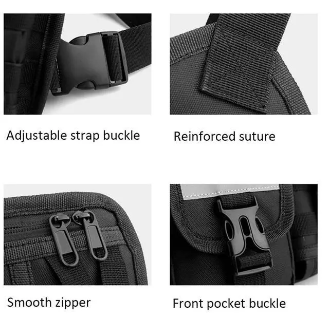 Chest bag with radio holder,Reflective design on the shoulder strap not only provides excellent low light visibility, but also ensures the safety of outdoor activities at night