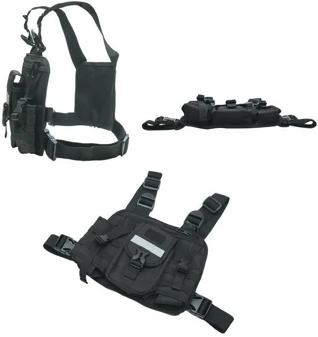 Chest radio harness Made of superior nylon water resistant material,lightweight and durable,wear resistance and tear resistance.SIZE11.02*1.57*9.06 inch
