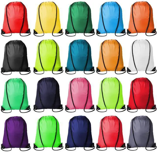 String bags are strong and colorful. You can use them for a drawing to hide prizes. They are a prize in themselves and are easy to use as a wrapping to hide a gift. Also, drawstring backpacks terrifically quick for shipping gifts.