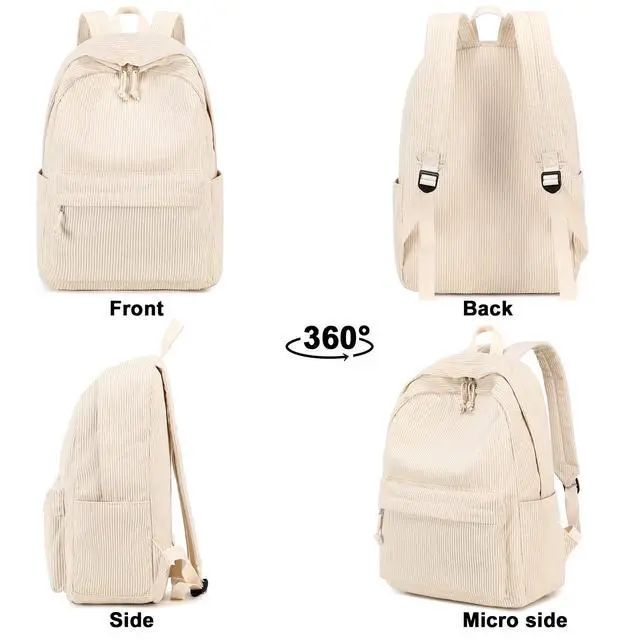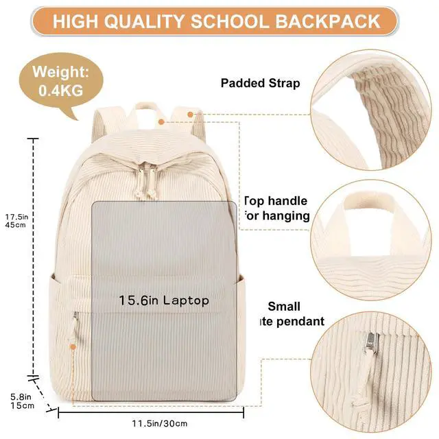 Great backpack for school has enough room for college student class essentials. Perfect size large corduroy backpack: 17*12*6inch(H x L x W), fits for 15.6 inch laptop and big folders. Capacity:24L. Suitable for middle schooler, high schooler, college students, and workers.