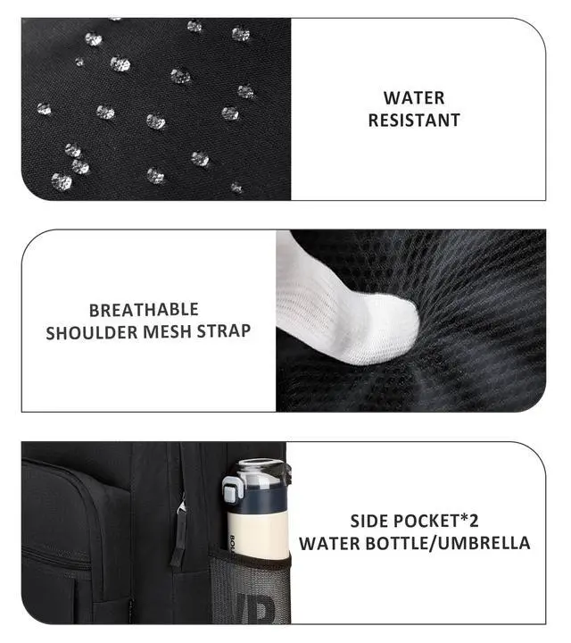 Water-Resistant & DurableMade of durable water-resistant fabric, it protects your items from light rain and spills. Sturdy zippers and reinforced stitching ensure long-lasting daily use.