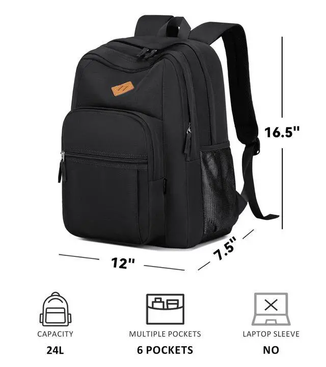Perfect Size & Large CapacityMeasuring 16.5"H x 12.2"L x 7.5"D, this backpack offers spacious storage for daily essentials, books, clothes and travel gear. It balances ample capacity with a streamlined profile, ideal for school, work and daily commuting.