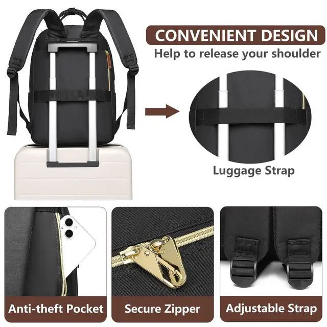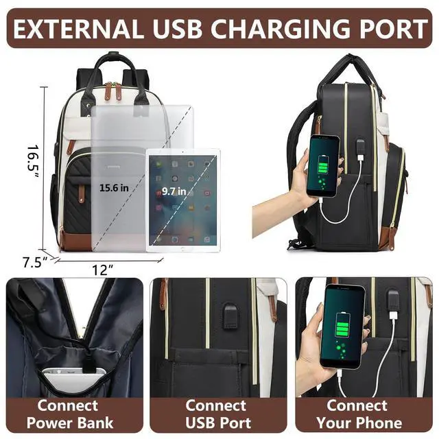 Work Backpack with USB Charging Port- 15.6-inch backpacks for women have an external USB charging port and Set-in charging cable that can be easily connected wherever you are. It is more convenient and comfortable for you. (POWER BANK IS NOT INCLUDED) Womens laptop backpack is the best choice for you.