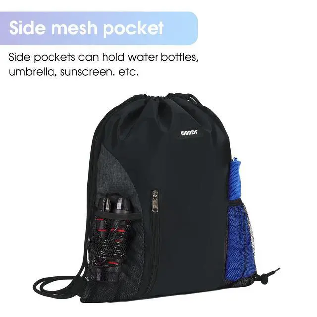 Drawcord closure doubles as shoulder straps, which can free up your hands and relieve shoulder stress. It is easy to access your personal items.