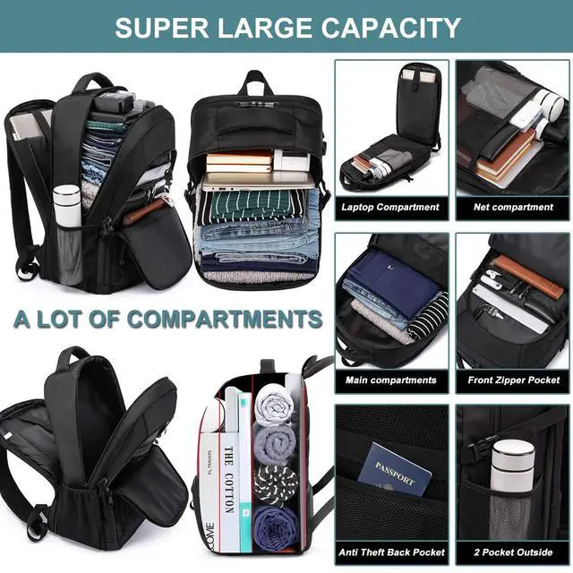 - 20+ compartments provide a separate space for your laptop, iPhone, iPad, passport, pen, key, wallet, watch, baby charger, MP3, 4A file, books, clothes, umbrella, bottle. Just find what you want.