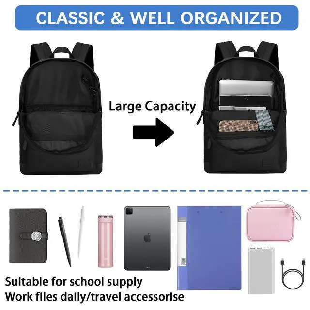 Water Resistant & Durable MaterialMade of high-quality water-resistant polyester, this sturdy backpack protects your belongings from rain and spills, built to last long-term use