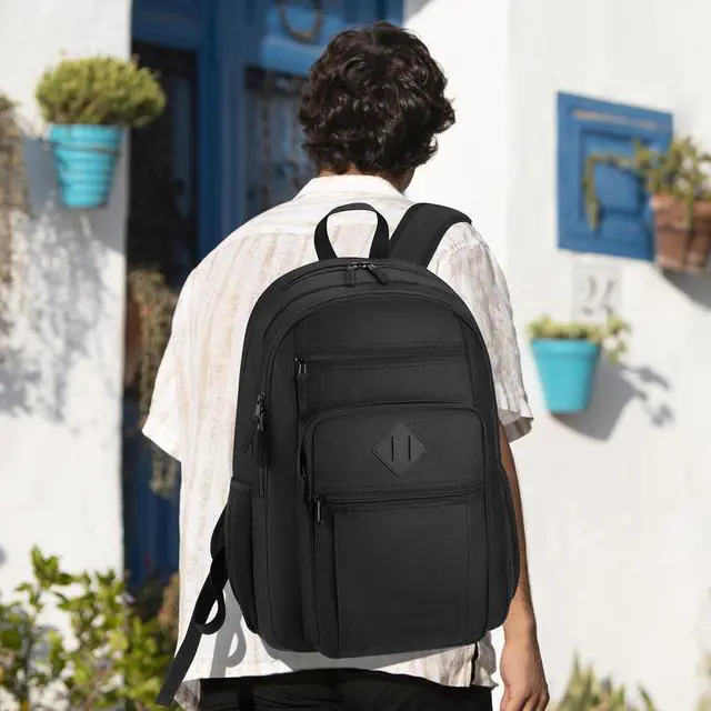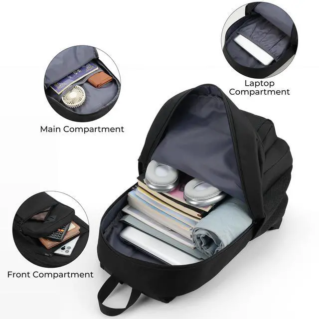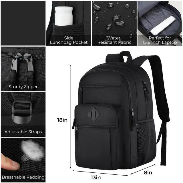 Unisex Black Backpack for School, Lightweight Boys Girls Backpack Fits 15.6 Inch Notebook, Water Bottle Pocket - Ideal for Teens, College Students, Adults