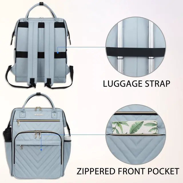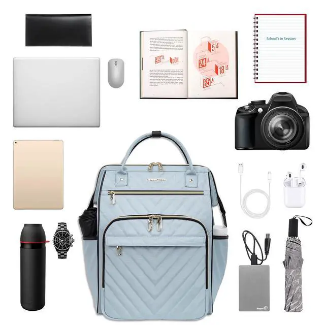 - Durable Material: The laptop backpack is made of high quality water resistant poly fabric, light blue design, generous and long lasting.