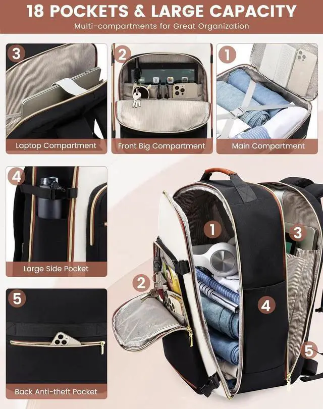 LOVEVOOK 50L Large Travel Backpack for Women & Men, Carry on Backpack Airline Approved, Waterproof Travel Essentials fits 18" Laptop, TSA Personal Item Travels Bag Sports Backpack with 3 Packing Cubes