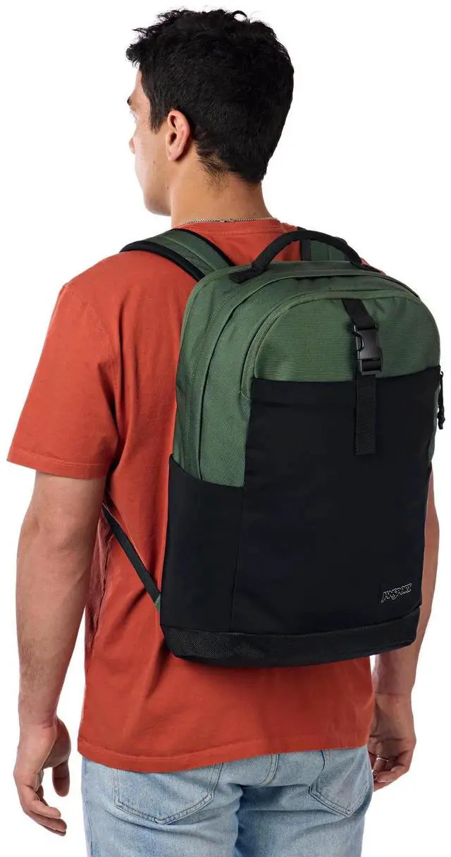 The JanSport Journey Pack Backpack is designed for adventurers who need both space and comfort. Measuring 12" x 20" x 6.5" (31 x 51 x 16.5 cm) and offering a generous 1648 cu in (27 L) capacity, this backpack is perfect for everyday use, travel, or outdoor excursions. Its large main compartment provides ample storage, while the dedicated 15-inch padded laptop compartment with an internal tricot-lined sleeve keeps your device safe and secure. Stay organized with features like dual side water bottle pockets, a zippered front pocket, and a gear loft compartment with internal organization.