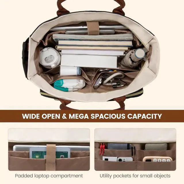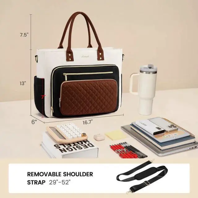 LOVEVOOK Teacher Tote Bag for Women Work, Laptop Bag With Large Cup Holder, Nurse Bags Professional Briefcase Business Computer Purses Handbag, Khaki-Beige-Coffee, 15.6 Inch