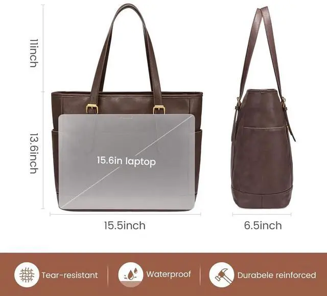 Durable & Practical Work BagThis work tote bag is made of durable, high-quality water-resistant and scratch-resistant soft PU leather and polyester lining. Metal feet protect your bag from damage and this bag will stand the test of time.