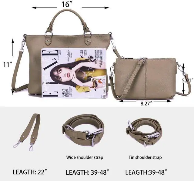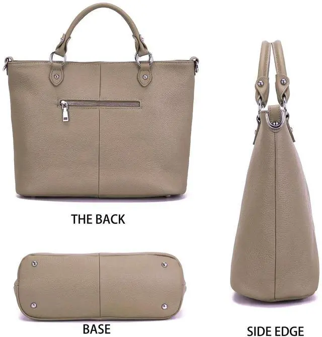 Buy a large genuine leather Tote women's bag and get a cross body bag at the same time.High quality metal zippers and metal accessories for leather bags.