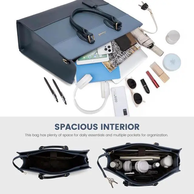 Multi-Compartment Organization: Featuring a thoughtful multi-compartment design, the work bag includes double side pockets, a padded laptop and iPad compartment, slip pockets, pen slots. Ensures effective organization, making it easy to keep items in order