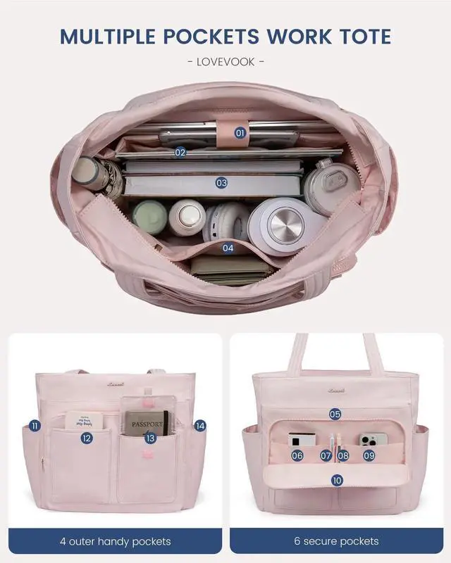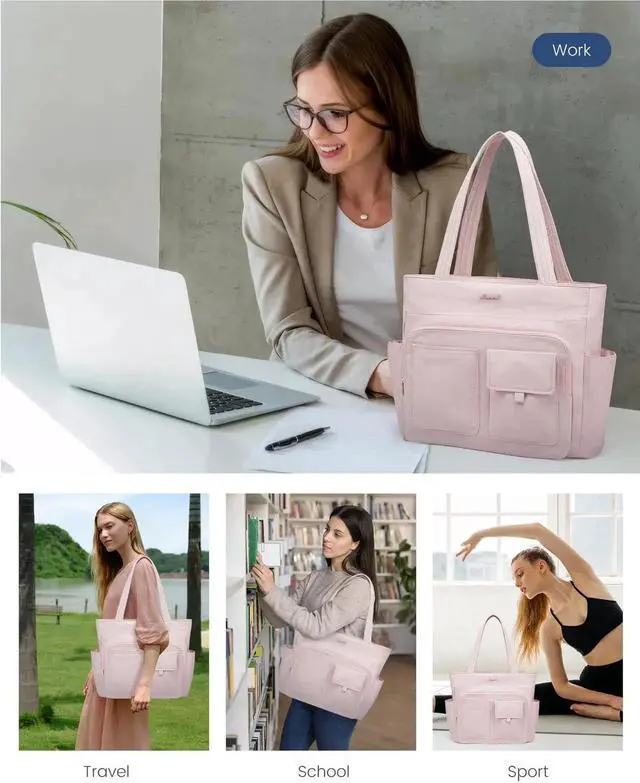 Multiple PocketsOur tote bag for women have 14 pockets:4 outer handy pockets and 10 interior pockets,making it perfect for organizing your work essentials.Whether you're teacher, nurse, or professional, this tote bag ensures everything organized.