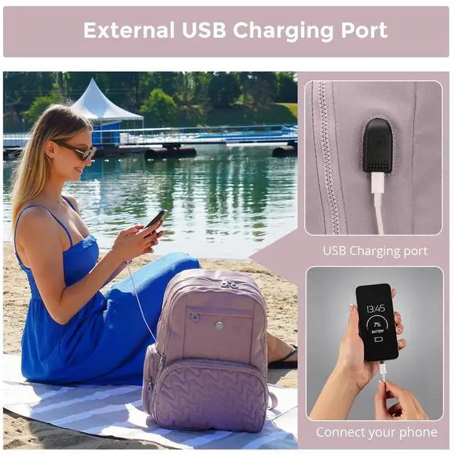 INTEGRATED USB-C CHARGING PORT: Built-in mobile power pocket and charging cable, the included USB-C cable is intended for use with a power bank with a USB-C output or with a compatible adapter. so that your mobile power in the backpack can be charged.