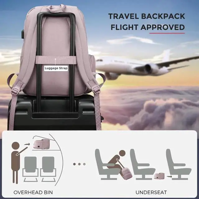 Swissdigital Design Travel Backpack for Women, Pink Simple Laptop College Modern Backpacks for School with USB Charging Port for Womens Girls ^^ FOUNEX
