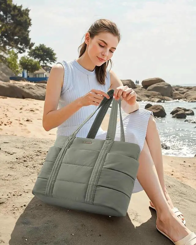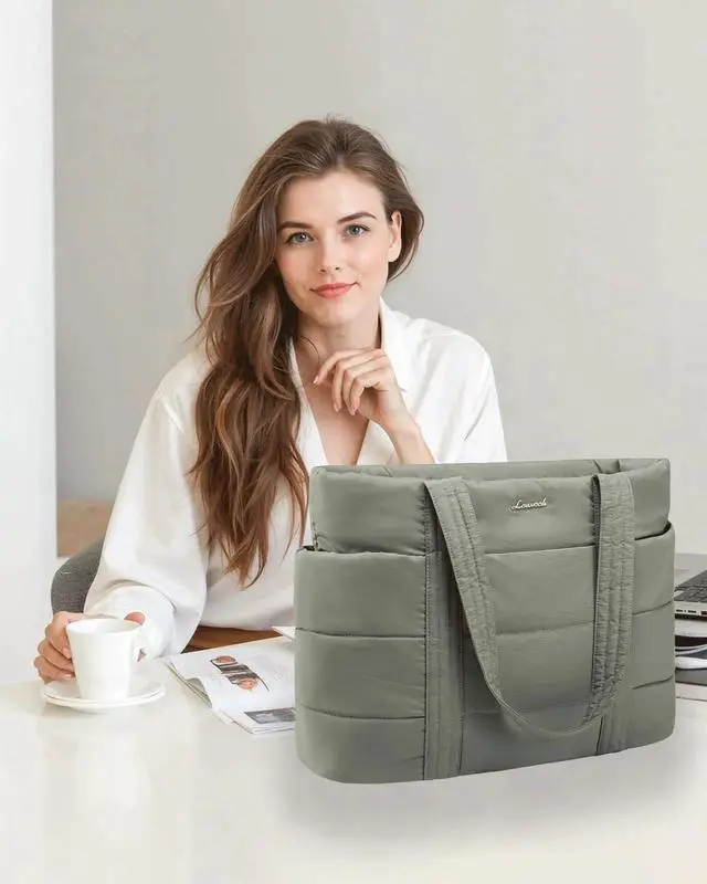 LOVEVOOK Tote Bag for Women, Large Puffer Work Tote Laptop Bag, Lightweight Travel Tote Bag with Zipper Gifts for Women