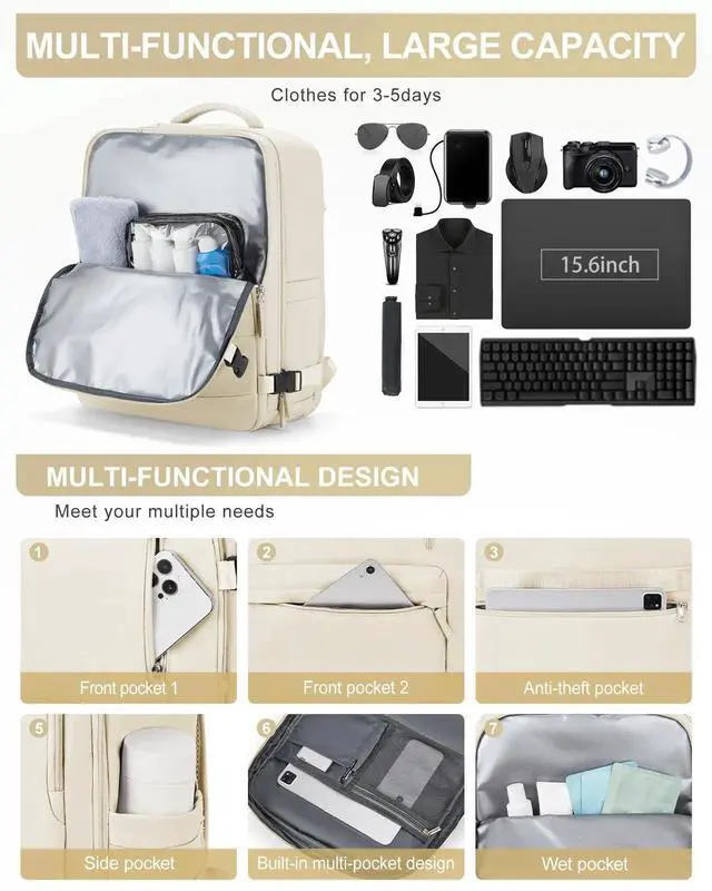 Flight Approved Travel Backpack The size of the backpack is 45*36*20CM/17.71*14.17*7.87 inches (manual measurement may have error, the error is not more than 3 cm), this backpack meets the maximum size allowed by most airlines and is suitable for both daily travel and business travel. You can put it under your seat or on the overhead luggage rack.