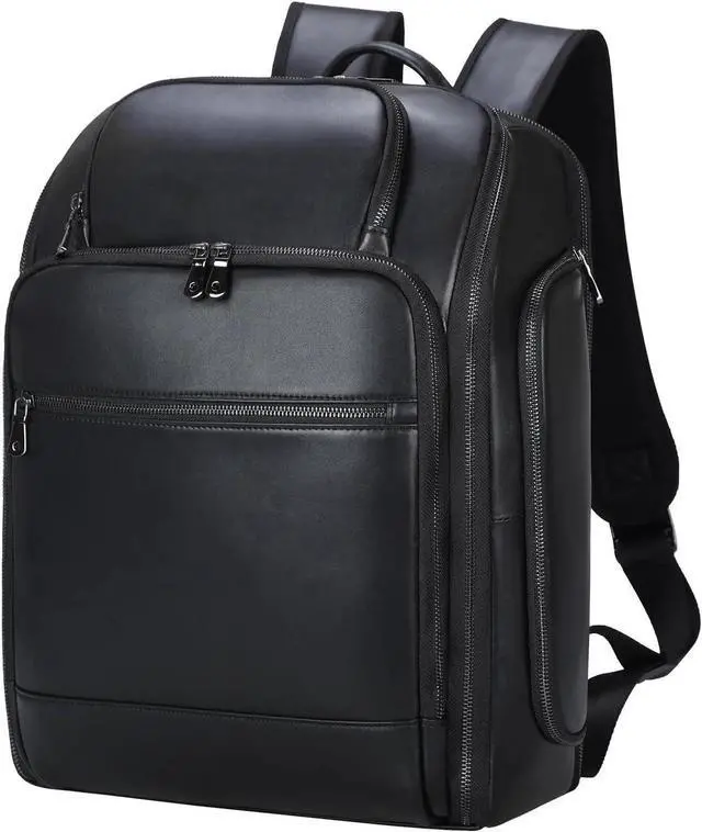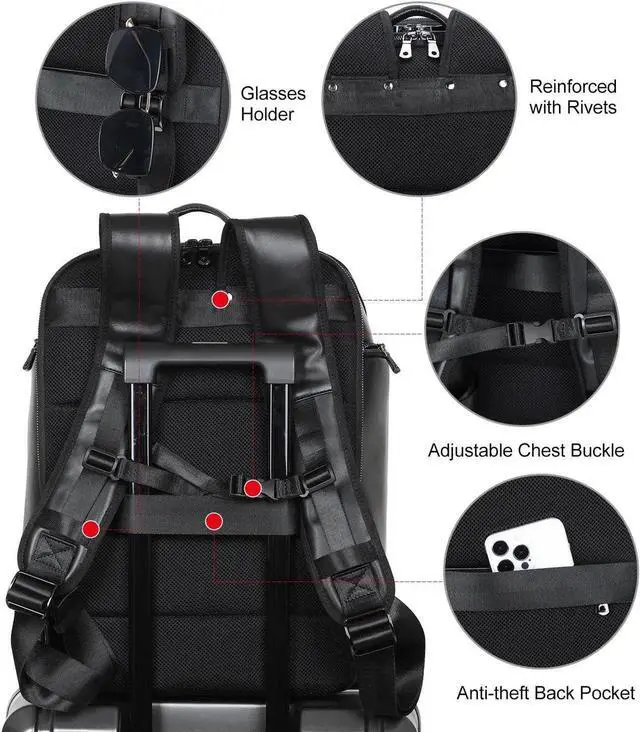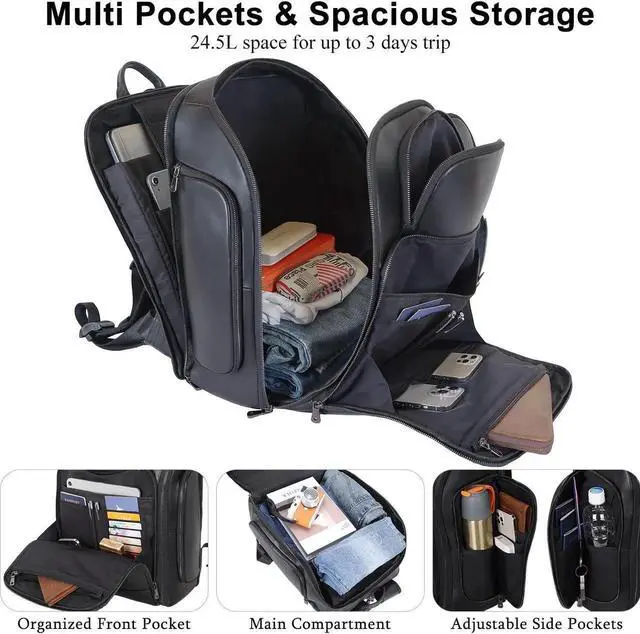 Premium MaterialThis large travel backpack is made with the real genuine leather which is smooth and soft, outfitted with heavy duty ykk metal zipper and reliable hardware. The back and shoulder straps are designed with breathable padding, which is comfortable to wear and won't stain your clothes
