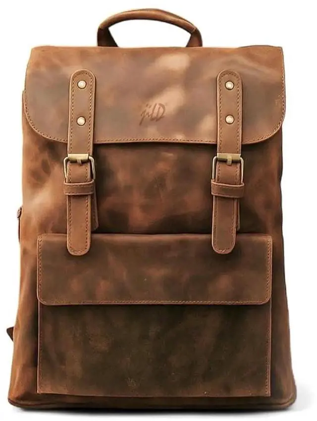 Jild Genuine Leather Backpack for Men Casual Carryon Vintage 16 Inch Laptop Bag Camping Travel Hiking Backpack Leather Rucksack (Vinatge Tan)