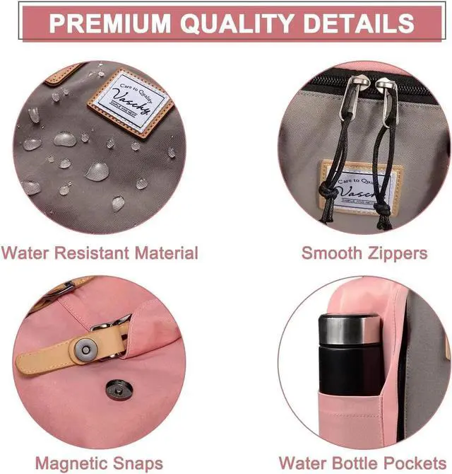 VINTAGE DESIGN: The Vaschy daily casual backpack is made of high quality water resistant soft durable Vinylon fabric.The vintage design features a rectangle, streamlined shape with two top handles for hand toting and adjustable backpack straps that make it easy and comfortable to carry.There are two water bottle pockets on both sides for keeping the water bottle and umbrella.