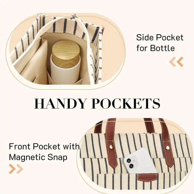 Multi-pocket Tote Bag: It features 8 interior pockets to keep all your items organized and within reach. And 1 exterior front pocket with a magnetic snap for easy access. Perfect as your everyday work bag