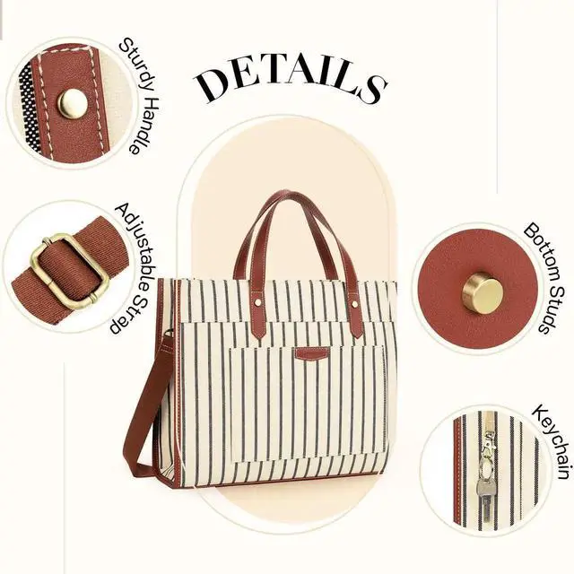 Missnine Laptop Tote Bag Canvas Laptop Bag 15.6 inch Work Shoulder Bags Casual Briefcase Handbag for Travel, Office, College (Stripe)