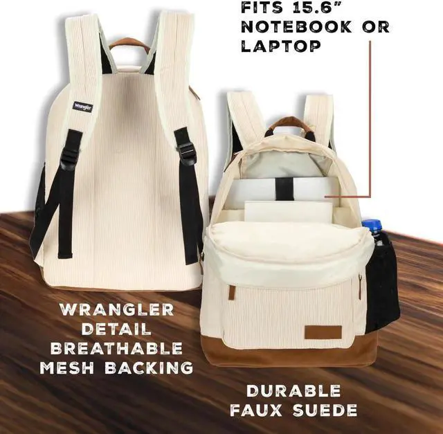 Wrangler Yellowstone Sturdy Backpack for Travel Classic Logo Water Resistant Casual Daypack for Travel with Padded Laptop Notebook Sleeve (Cream)