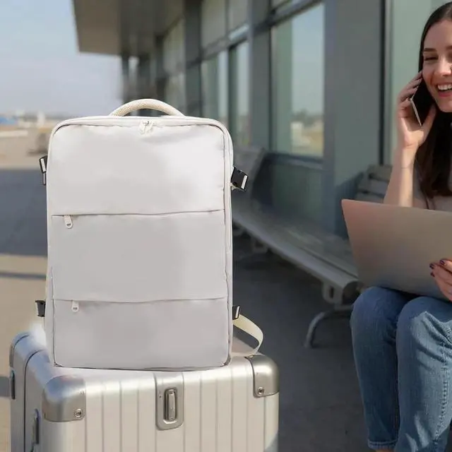 size: 18.5 * 12.8 * 8.07 inches it meets most airline carry-on requirements and features a 180-degree suitcase-style opening for quick security checks. The ergonomic airflow back system with thick padded mesh and adjustable shoulder straps ensures comfort, while the trolley sleeve allows easy attachment to luggage handles. Made from lightweight yet durable nylon, this backpack is ideal for business, university, hiking, or international travelkeeping your essentials organized and secure wherever you go. Upgrade your travel experience with this versatile, flight-friendly backpack!