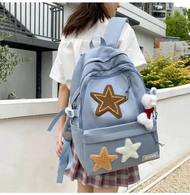 MININAI Y2k Backpack with Kawaii Pendant Aesthetic Star Backpack Cute Preppy Laptop Book Bag Back to College Supplie (Blue, One Size)