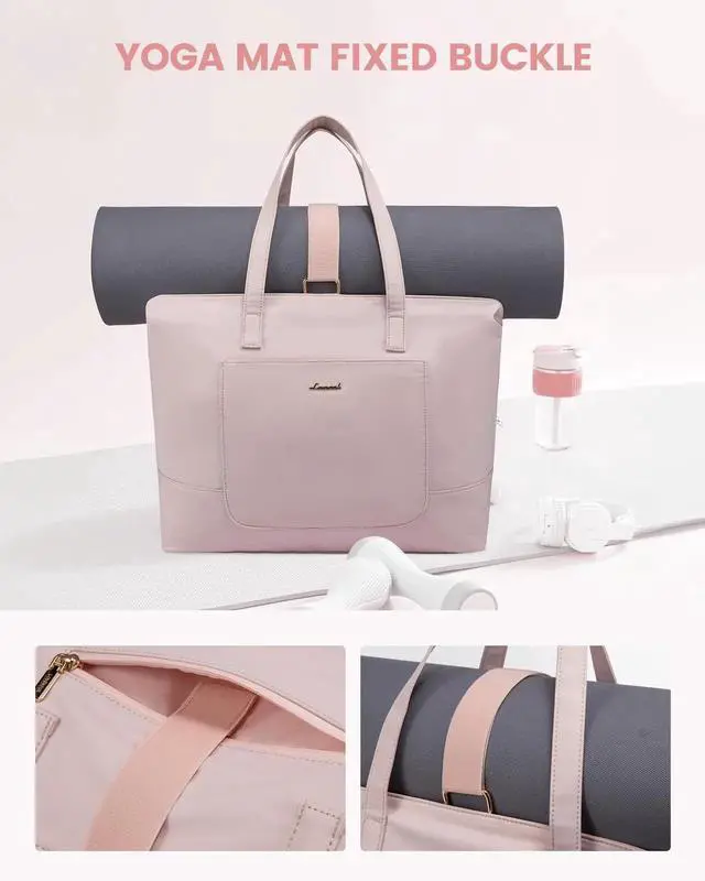 LOVEVOOK Tote Bag for Women, Work Tote with Laptop Compartment for Nurse Travel Commuter, Gym Tote Purse with Yoga Mat Strap