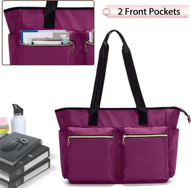 Damero Teacher Tote Bag, Teacher Utility Tote Bag with Zip Top and Padded Sleeve for up to 15.6 Laptop for Work, Office, Business, Purple (Upgraded)